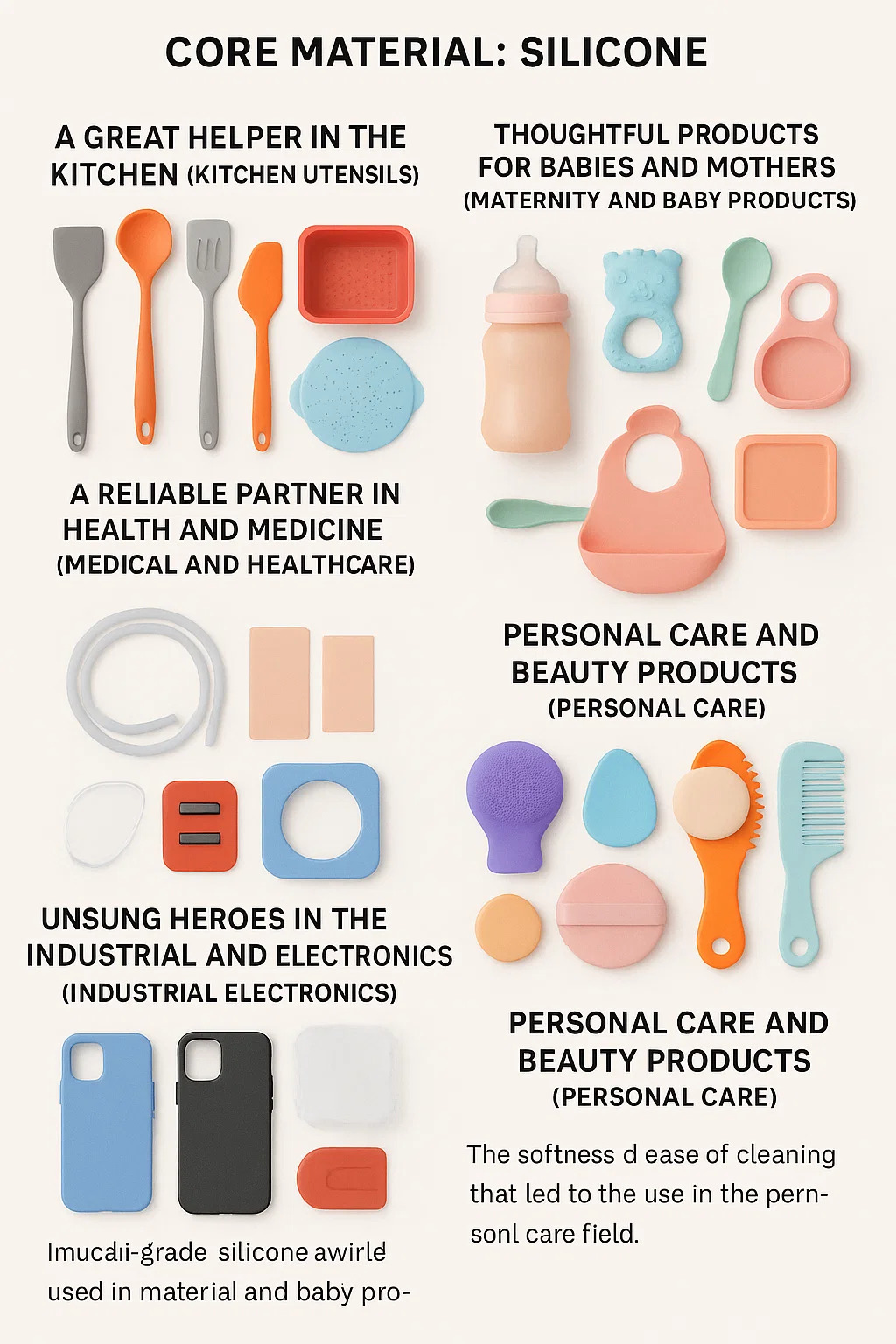 Örnekler: Spor su şişesi ağızlıkları, spor saat kayışları, kapı durdurucu tampon pedleri, mobilya bacak pedleri, evcil hayvan mama kaseleri, etli bitki saksıları, yaratıcı kırtasiye malzemeleri, yetişkinlere yönelik ürünler vb.